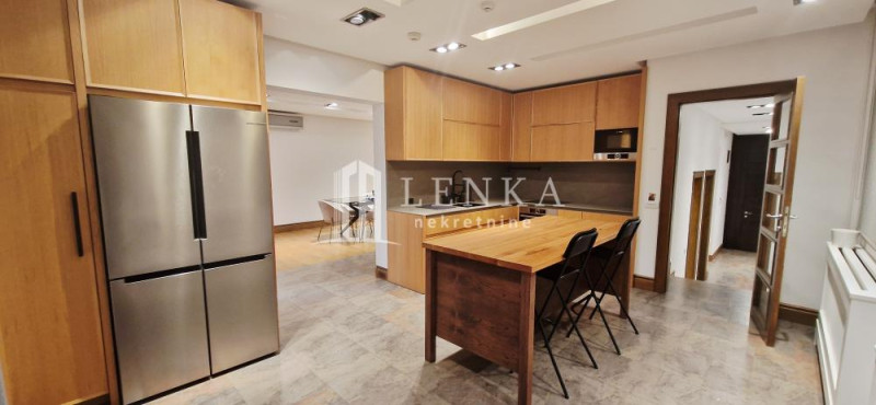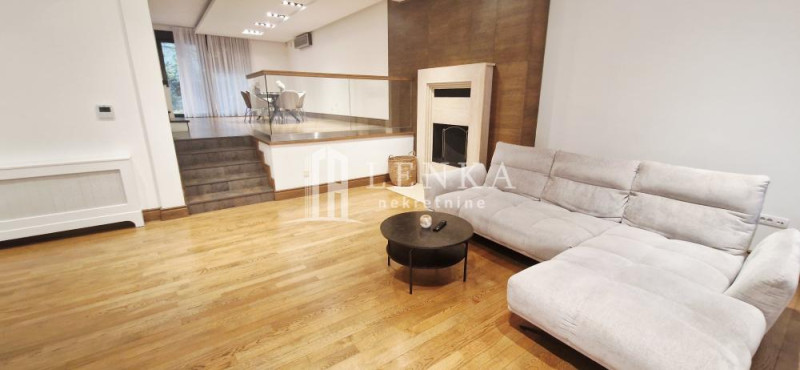 Specijalna ponuda retko u ponudi u rezidencijalnom delu Dedinjaizdaje se kuča sa dva parking mesta u garaži objekta. Mikrolokacija je odlično saobraćajno povezana sa ostalim delovima grada što olakšava mreža novih gradskih saobraćajnica . U neposrednoj blizini objekta nalazi se nekoliko internacionalnih škola i vrtića, pijaca, marketi, veliki broj restorana i kafića.. Na samom ulazu u objekat vas dočekuju stepenice, podest i hol od granitne keramike. Na ulazu u nekretninu prostor na prvom nivou otvori će Vam i blindirana sigurnosna vrata sa ukrasnim panelom i ino bravom. Široki ulazni hodnik vas vodi u prostrani open space produženi dnevni boravak koji odiše udobnošću i toplinom upotpunjen trpezarijrijom gde ćete ušivati u hrani i piću sa Vašim najmiliima. Kuhinjski prostor je uređen veoma lepo te je u njemu spojena spojena esttetika i funkcionalnost. Konfor ovog prostora se vidi kroz svedeni blok od još tri spavaće sobe sa garderoberom i prostorom za ćminkanje.Iz dnevnog boravka se izlazi na terasu sa koje se pruža pogled od XY$. Dva kupatila, dva toaleta (plus vešeraj)od kojih je jedno sa tuš kabinom a drugo sa ležećom kadom, oba su izuzetno lepa i odišu funkcionalnošću dobijenom kroz izabrane boje i podržano toplim materijalima tako da deluju opuštajuće a keramika sanitarije I sanitarna galanterija je italijnske, nemačke i španske proizvodnje. Spoljašna stolarija visokog kvaliteta sa roletnama i velikim oknima tako da je obezbeđen mali koeficijent ulaza i izlaza toplote, odlično je zvučno izolovan, na podovima hrastov parket , jednokrilna sobna vrata , prostor je klimatizovan i razvučena je mreža radijatora . Alarmni sitem, kamere i optika su ugrađeni u ceo prostar, u suterenu se nalazi hobi prostor sa saunom i jakuzi kadomi, garaža za dva automobila ostava i tehnička prostorija Retko u ponudi atraktivna nekretnina koja pruža pun konfor . Zakupac plaća proviziju 50% od ugovorene mesečne rente
