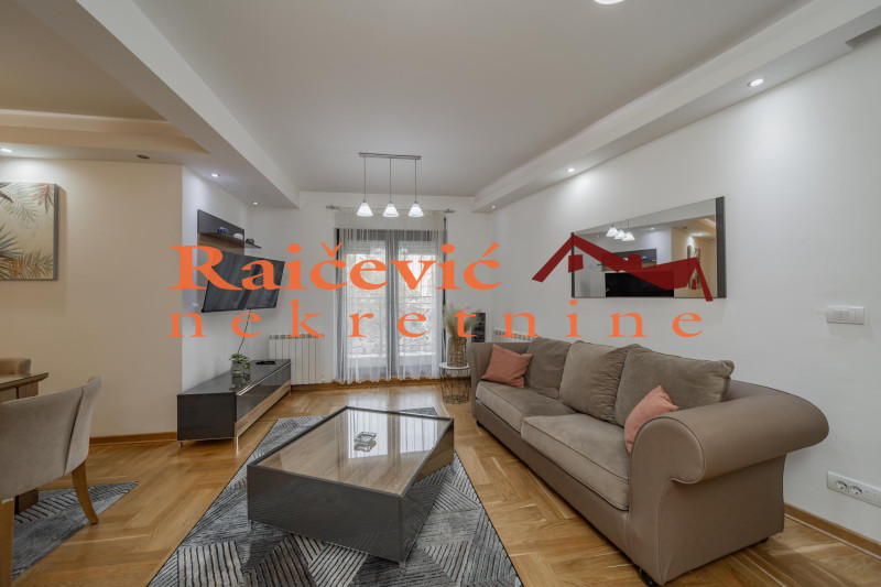 Ovaj potpuno nov i moderno opremljen stan nalazi se na drugom spratu savremene sestospratnice. Dvostrano je orijentisan, a spavaca soba okrenuta ka sporednoj ulici garantuje mir i tisinu. Enterijer odise elegancijom, pazljivo je osmisljen da zadovolji i najzahtevnije ukuse. Prostrane i funkcionalno povezane prostorije ukljucuju savremeno uredjenu kuhinju opremljenu najmodernijim aparatima, trpezariju, udobnu dnevnu sobu sa izlazom na terasu, mirnu spavacu sobu i moderno kupatilo.