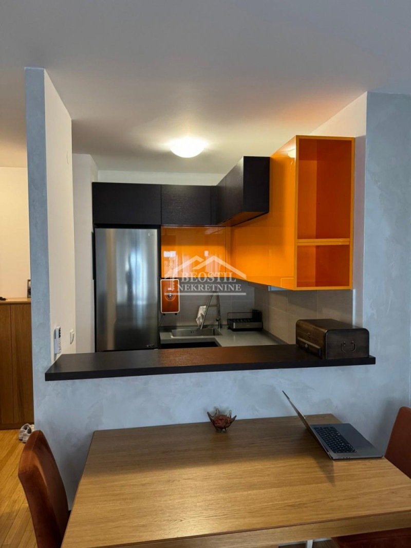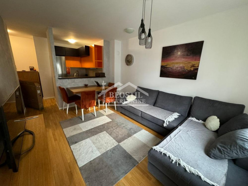 Stan u kompleksu Zelena avenija, trosoban, sa dve spavaće sobe, kupatilom, toaletom, lođom, kuhinjom, trpezarijom i velikom dnevnom sobom.