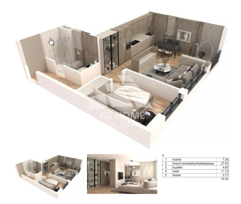 2.0, 53,36m2, terasa, EG, 3/4, lift, interfon, video nadzor, mogućnost garažnog mesta. Građevinska dozvola