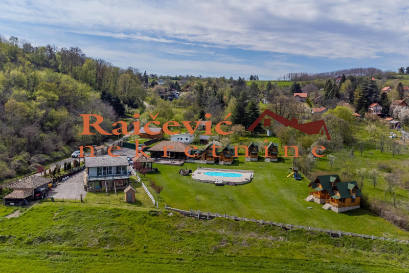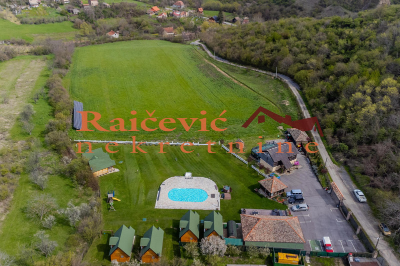 Na delu placa koji obuhvata 50 ari izgradjen je atraktivan tursiticki kompleks koji obuhvata 6 ukusno opremljenih drvenih bungalova (svaki uknjizen na 35 m2 korisne povrsine), objekat za kratkotrajni odmor spratnosti P + I (uknjizen na 229 m2 korisne povrsine), restoran spratnosti P (uknjizen na 71 m2 korisne povrsine) i montazni bazen sa masinskom prostorijom (62,93 m2 korisne povrsine).
