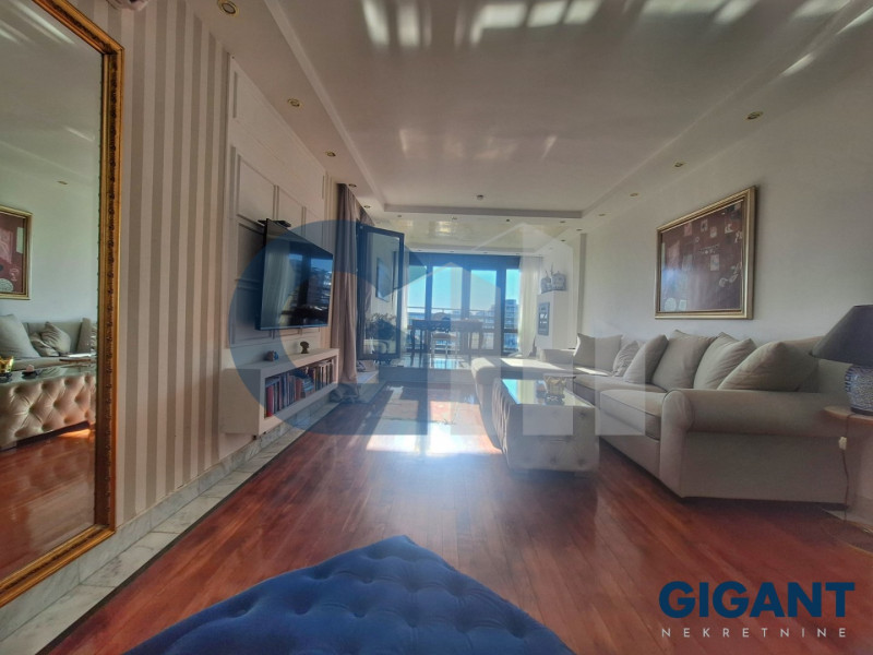 U ponudi kompletno namešten, prostran i svetao četvorosoban stan, površine 115m2+52m2 terase, smešten na poslednjem, 8. spratu stambene zgrade sa liftom (godina izgradnje 1983.). Stan je odmah useljiv, sa funkcionalnim rasporedom prostorija i obiljem prirodnog svetla zahvaljujući jugoistočnoj orijentaciji.