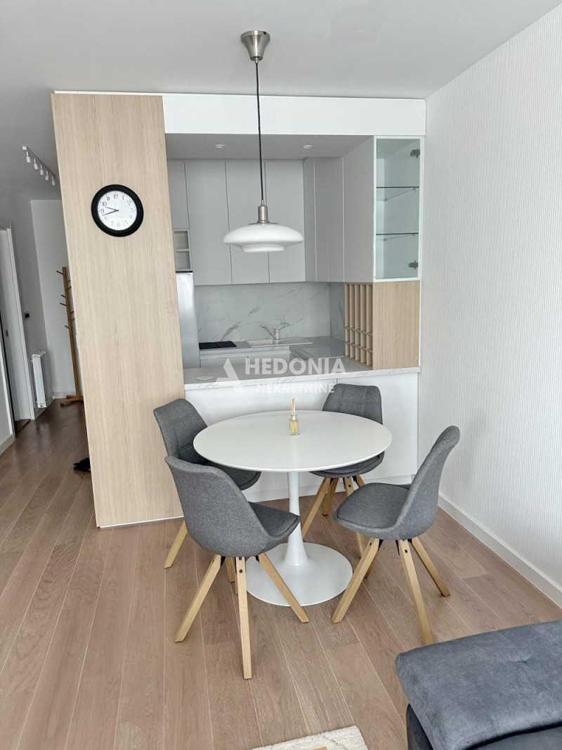 Stan je nov i luksuzan. Sastoji se iz ulaznog hodnika, dnevno kuhinjsko trpezarijskog dela, spavaće sobe, kupatila i terase. Izdaje se kompletno namešten i opremljen. U cenu je uračunato parking mesto. Useljiv od 01.05.2026.godine.