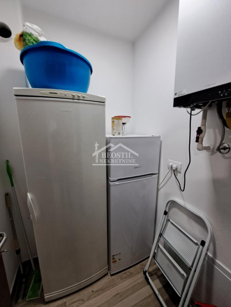 Централна градска улица, нова зграда, са централним грејањем на гас и лифтом, припадајуће укњижено гаражно место, комфоран стан са великом улазном просторијом у којој је кухиња,трпезарија и дневна соба са изласком на терасу.