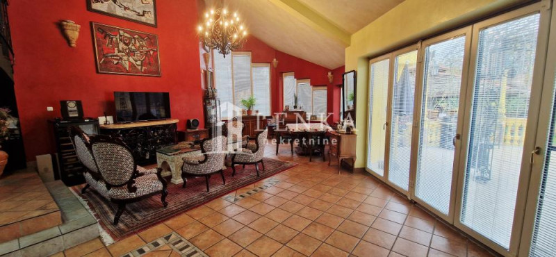 Prodaja LUX hedonističke kuće sa pogledom na Dunav. U prizemlju Vam se otvara: raskošan dnevni boravak sa kaminom, dvostrano orijentisan sa izlazom na terasu i uređeno veliko dvorište, moderno opremljena kuhinja sa trpezarijom, kupatilo sa prirodnom ventilacijom. Bruto površina prizemlja iznosi 296m2, a neto 243m2. Iz prizemlja se silazi u suteren, koji se sastoji iz dva dela prvi deo: višenamenske prostorije - dnevni boravak, hodnik, kupatilo, kotlarnica, soba, vešernica i tri ostave; ulaz u drugi deo je iz dvorišta - vinski podrum, kuhinja, ostava i toalet; Na spratu je : hodnik, četiri sobe, master kupatilo i toalet; master spavaća soba (20m2) sa sopstvenim kupatilom (9m2) koje ima prirodnu ventilaciju, garderoberom (7m2) i izlazom na terasu površine 8m2; Druga soba (13m2) poseduje garderober sa prozorom (3m2); Treća soba (19m2) izlazi na terasu površine 9m2; Četvrta soba (14m2) izlazi na terasu površine 5m2; Kuća poseduje i prazan tavanski prostor (betonska ploča). Oko kuće je prelepo dvorište sa letnjikovcem i pomoćnim objektom (trpezarija, roštilj). Ulazno dvorište je sa nadstrešnicom i parking mestima za tri vozila, dok su ispred kuće još tri pripadajuća parking mesta. Kupac plaća proviziju 2%