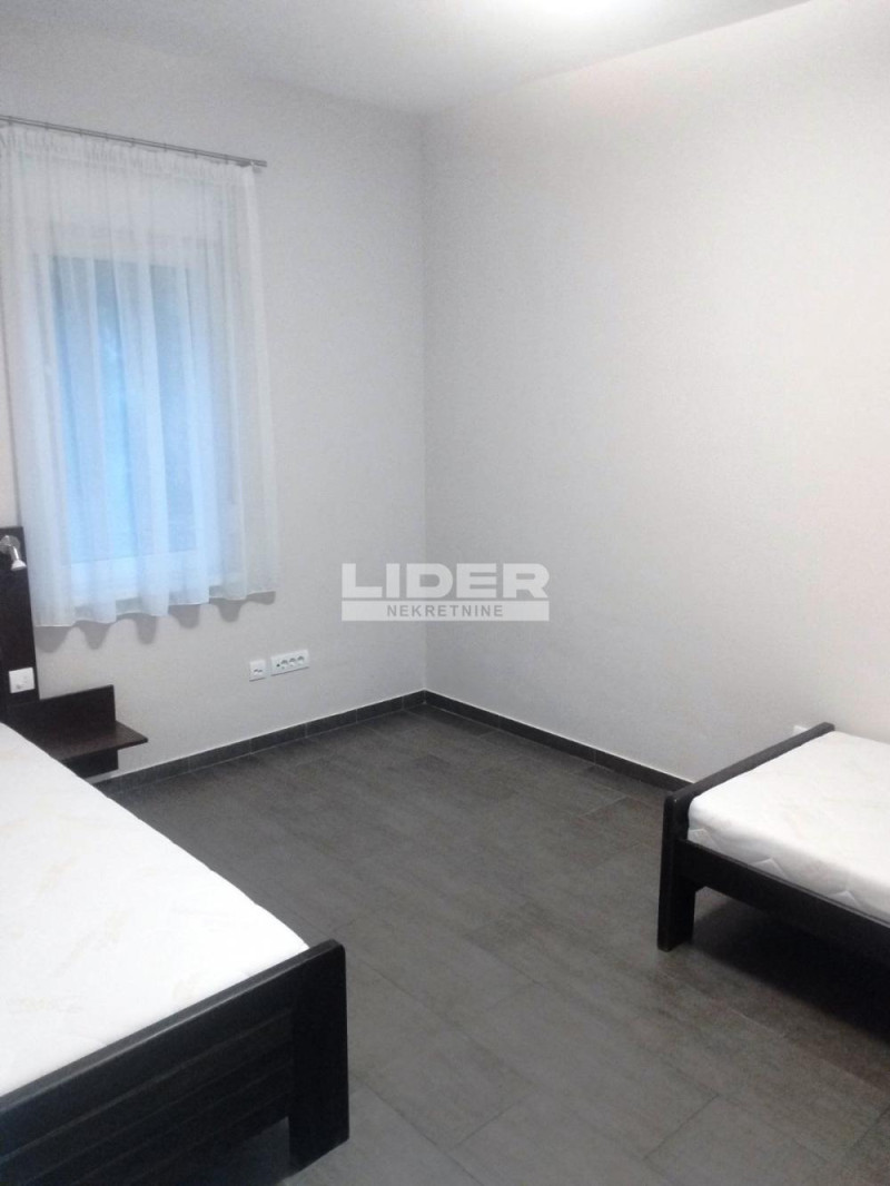 U mirnoj ulici u blizini Zire izdaje se kompletno namešten stan sa 2 spavaće sobe, velikim dnevnim boravkom sa trpezarijom, kuhinjom, lepa terasa od 5m2 gleda ka dvorištu punom zelenila. Stan je uredan čist, svetao, kompletno je namešten i opremljen svim savremenim kućnim uređajima. Fiksni mesečni troškovi u iznosu od 170 eur pokrivaju trošak struje, podnog grejanja, kablovske tv i wi-fi. Mogućnost zakupa garažnog mesta. agencijska provizija 50%