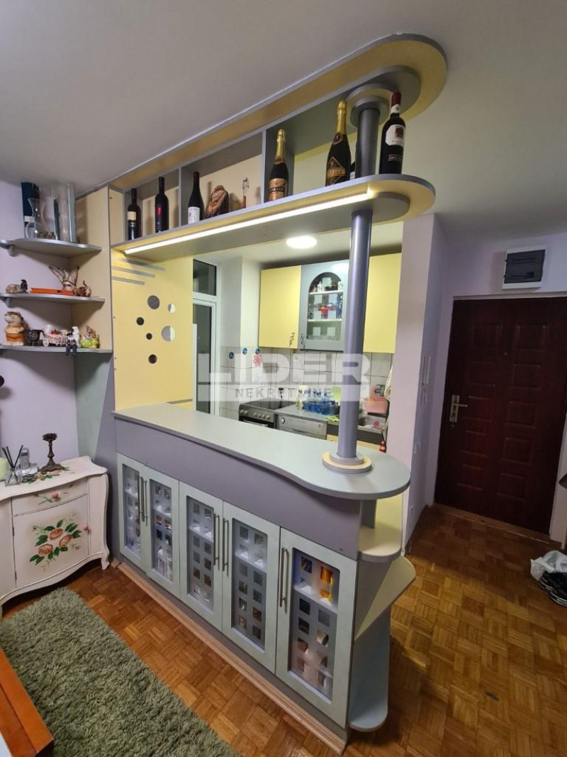 U stanu je centralno grejanje, protočna topla voda. Ostaje ugradna kuhinja, šank, ugradni ormari.