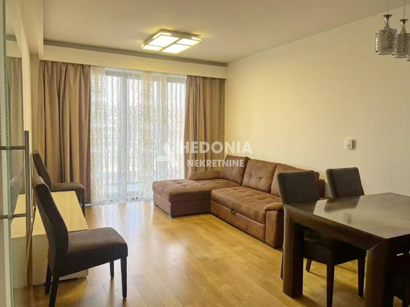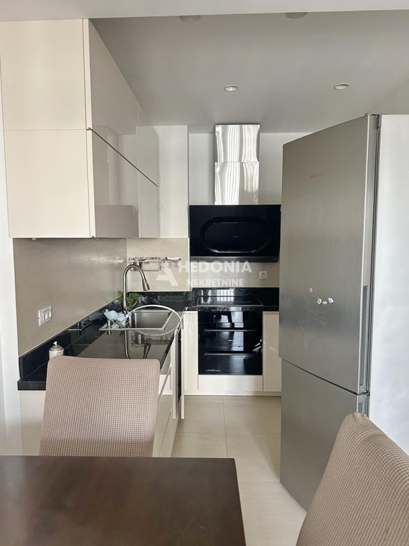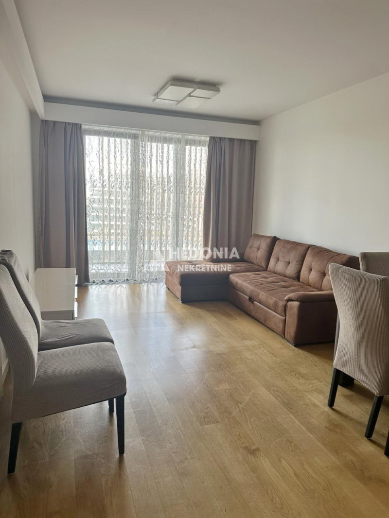 U prestižnom naselju na Novom Beogradu, stambeno - poslovnom kompleksu West 65, koji je izvanredan primer spoja savremene umetnosti i arhitekture, nalazi se ovaj trosoban stan. Impresivna izgradnja je učinila da ovaj deo grada postane simbol uspešnosti i kreativnosti. U West-u 65 se, osim modernih, po najsavremenijoj tehnologiji građenih zgrada, vodilo računa i o pejzažnom uređenju. U centru kompleksa nalazi se prelepo osvetljena fontana, pa ćete se osećati kao na moru. Uz veseli žamor ljudi iz okolnih kafića i restorana, učiniće da se osećate zdravo i raspoloženo. Deca, stariji sugrađani kao i kućni ljubimci su zaštićeni i sigurni u ovom kompleksu koji je sinonim za oazu mira, udobnog života i sveukupne lepote. Kompleks ima dvadesetčetvoročasovno fizičko i video obezbeđenje. Stan je nov i luksuzan. Sastoji se iz ulaznog hodnika, dnevno-kuhinjsko-trpezarijskog dela, dve spavaće sobe, kupatila, toaleta i terase. Mogućnost kupovine garažnog mesta po ceni od 40.000 EUR. Useljiv!