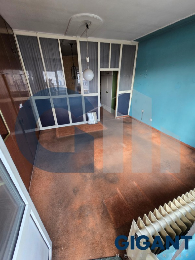 Dvosoban stan sa velikom terasom, okrenut ka ulici i odličnim pogledom prema Beogradu na vodi, stan je za kompletno sređivanje.