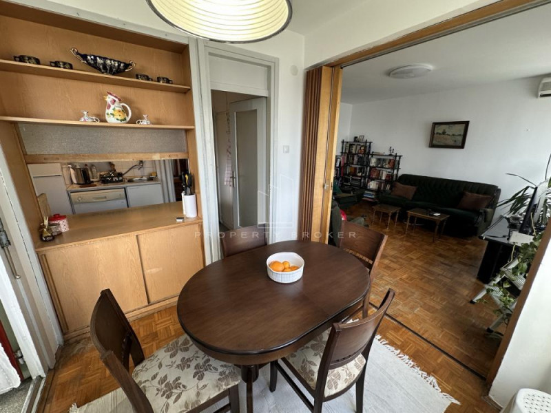 Funkcionalan, izuzetno lepo osvetljen stan sa dve spavaće sobe. Sastoji se od predsoblja, dnevne sobe, trpezarije, kuhinje, lođe, dve spavaće sobe, kupatila i wc-a. uz stan se prodaje garažno mesto u zgradi.