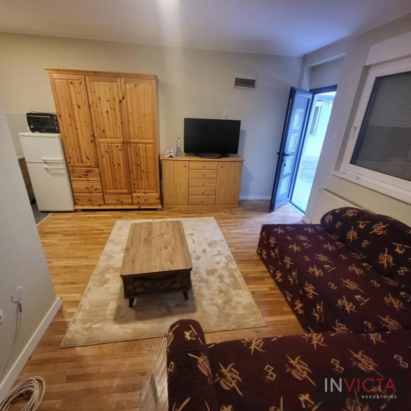 Izdaje se renovirana, novoopremljena prizemna garsonjera u dvorišnom krilu stambene zgrade sa mogućnošću parkiranja u dvorištu iste. U dvorišn,m krilu su svega 4 stana , a dvorište je tiho i mirno. Neposredna blizina sajma, bolnice, medicinskog fakulteta, objekata snabdevanja. Stan je opremljen ugaonom garniuturom na izvlačenje, klub stičićem koji se rasklapanjem pretvara u trpezarijski sto, klima uređajem, veš mašinom, tv-om, indukcionom pločom za kuvanje i mini rernom. Grejanje centralno, na gas. Odmah useljiv stan uz obavezan depozit. Broj u Reg.posrednika 475.