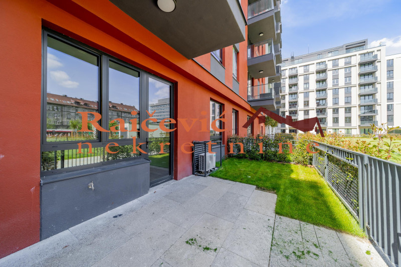 Jednostrano orijentisan stan ka zelenilu - prema Savskoj ulici i Palati pravde. Izmedju stana i ulice je velika zelena povrsina, nema buke. Pogodan je i za zivot i za izdavanje.