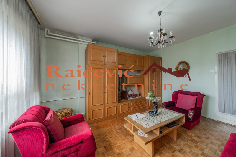 Prostorije: hodnik, dnevna soba, kuhinja sa trpezarijom, ostava, dve spavace sobe, kupatilo, toalet i zastakljena lodja.