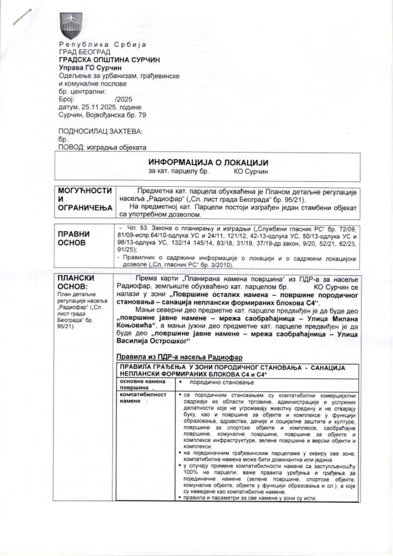 Dozvoljena gradnja. Sve informacije oko gradnje, se nalaze u INFORMACIJI O LOKACIJI u prilogu.