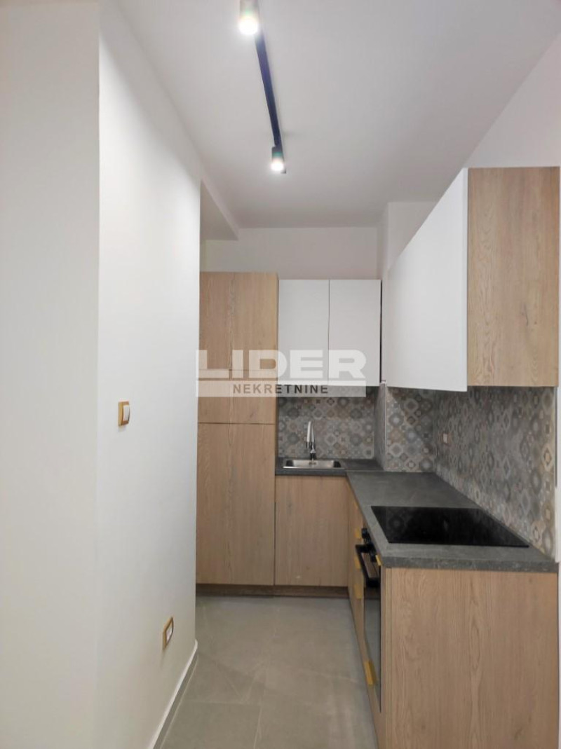 Veoma funkcionalan minimalistički stan sa otvorenim prostorom koji čine mali hodnik, kuhinja sa trpezarijom, dnevni boravak sa izlazom na terasu i spavaća soba, kupatilo.