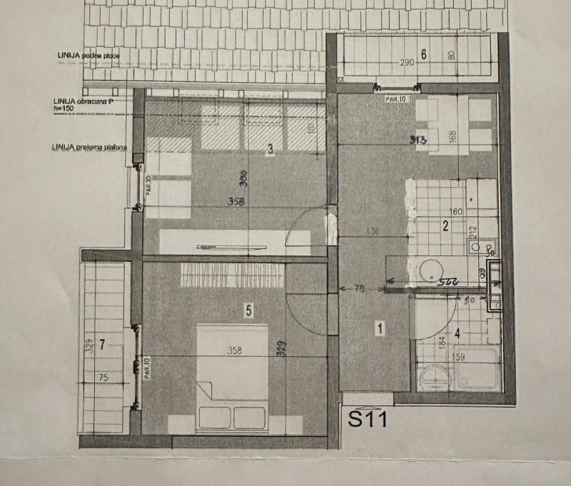 Poseduje dve spavaće sobe, kuhinju sa trpezarijom i dnevnim boravkom, kupatilo, predsoblje i dve terase.