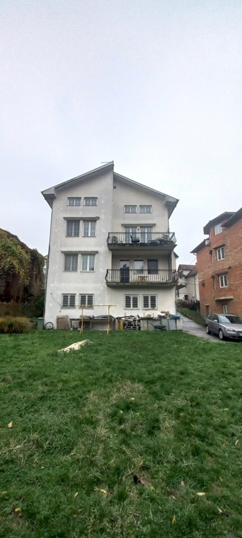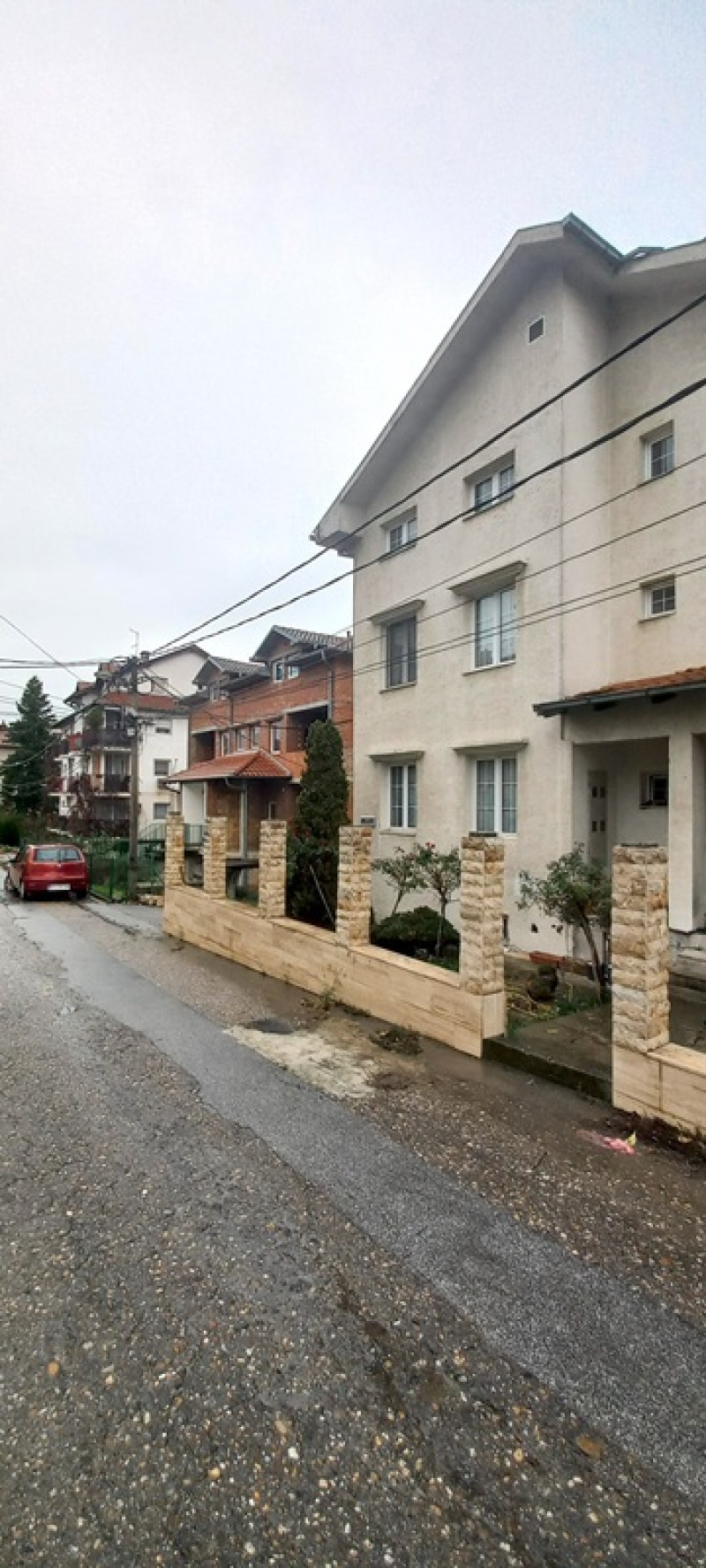 Kuca gradjena 2000. godine, na Banjici-Paunov breg, sa cetiri etaze , u osnovi povrsine 192m2, na placu od 5 ari. Izuzetno kvalitetno gradjena kuca, zidana blokom, sa perlitnom fasadom. Aluminijumska stolarija, prvoklasni parketi. Kuca ima cetiri etaze: prizemlje+dva sprata+potkrovlje. U prizemlju je veliki poslovni prostor, visine 3, 6 metara, kuhinja, mokri cvor i lozionica. na prvom spratu su dva stana: manji dvosoban, i veliki trosoban stan sa dnevnim boravkom od 50m2. Na drugom spratu je veliki petosoban stan sa dnevnim boravkom od 70m2 i dva kupatila,. Potkrovlje nije izgradjeno /izvuceni:struja, vodovodne cevi i cevi za grejanje/. Kuca je prikljucena na gradsku kanalizaciju. Grejanje na gas, pelet i struju. Oko kuce uradjena projektna drenaza sa sest sahtova. Predato je za upis u katastar po zakonu "svoj na svome".