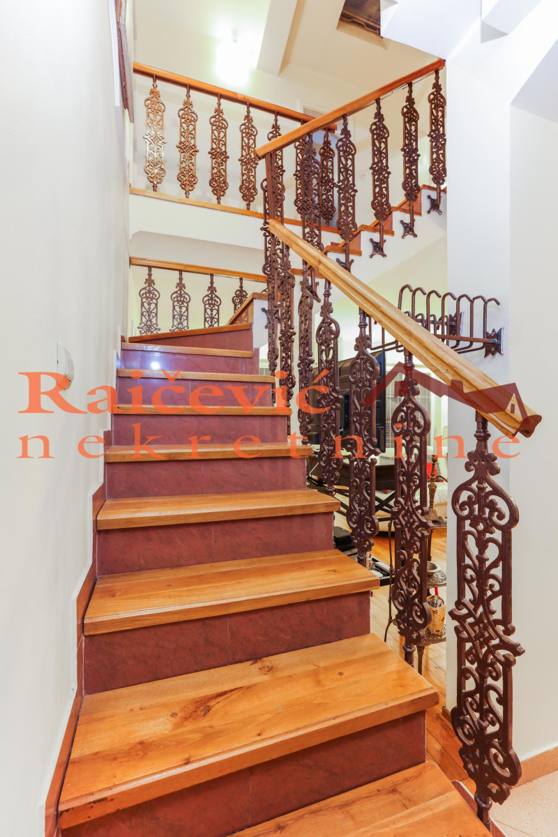 Donji nivo: dnevni boravak sa trpezarijom i izlaskom na terasu i manju zastakljenu lodju + kuhinja + radna soba + kupatilo + ostava.