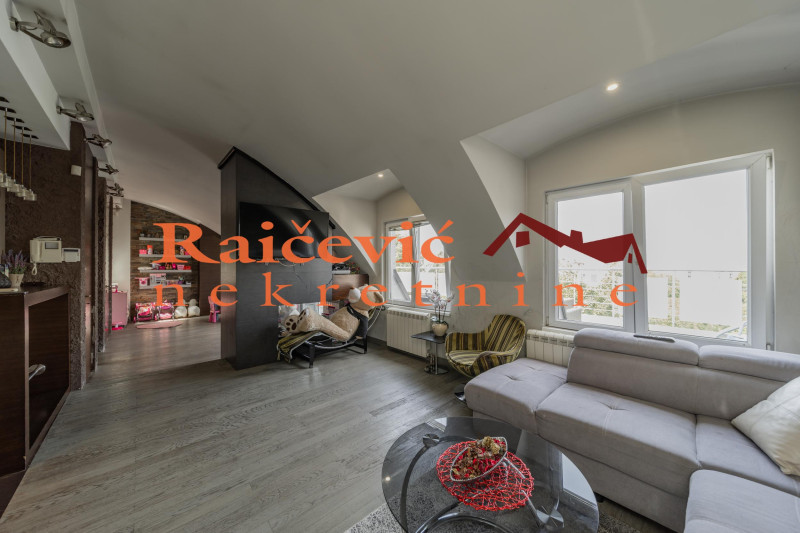 Ekskluzivna prodaja jedinstvenog tripleksa na dobroj lokaciji. Dvostrano je orijentisan, suncan i svetao. Prelep, sirok pogled na park i grad. Prostran, ugradni plakari, garderoberi, 2 terase, 2 mokra cvora, 2 ulaza, 2 parking mesta. Mnogo mogucnosti za adaptaciju, dobijanja jos prostorija.