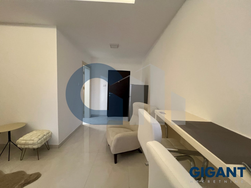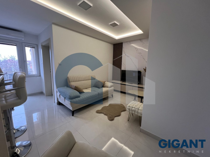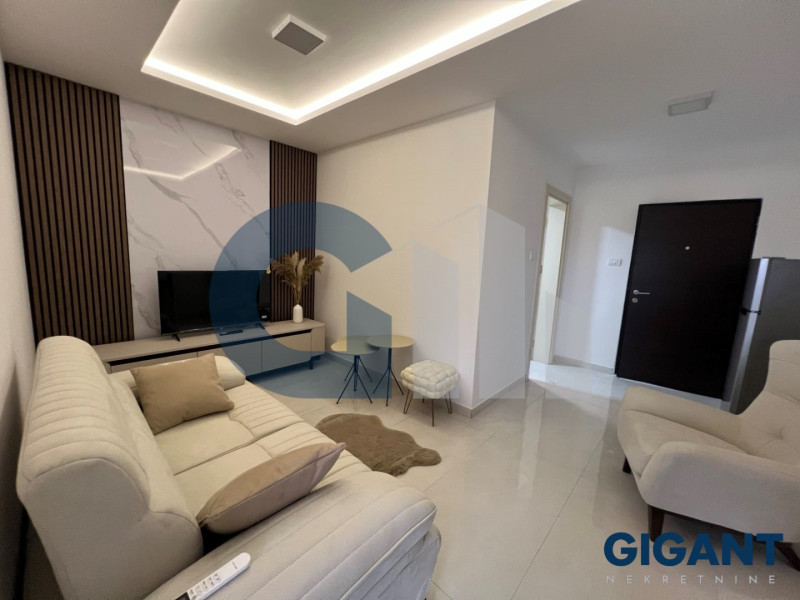 Lux dizajnerski opremljen stan, izuzetno svetao i komforan, sa velikom prostranom terasom sa otvorenim pogledom. Stan je neuseljavan, sve je novo i u garanciji. Grejanje centralno, podno koje ulazi u cenu zakupa. U sklopu objekta veliki market, na 50m autobus, pošta, blizina pijace i banaka. Odlična lokacija, centralni deo naselja. Na spratu su dva stana sa izdvojenim hodnikom. Parking u slobodnoj zoni ispred zgrade.