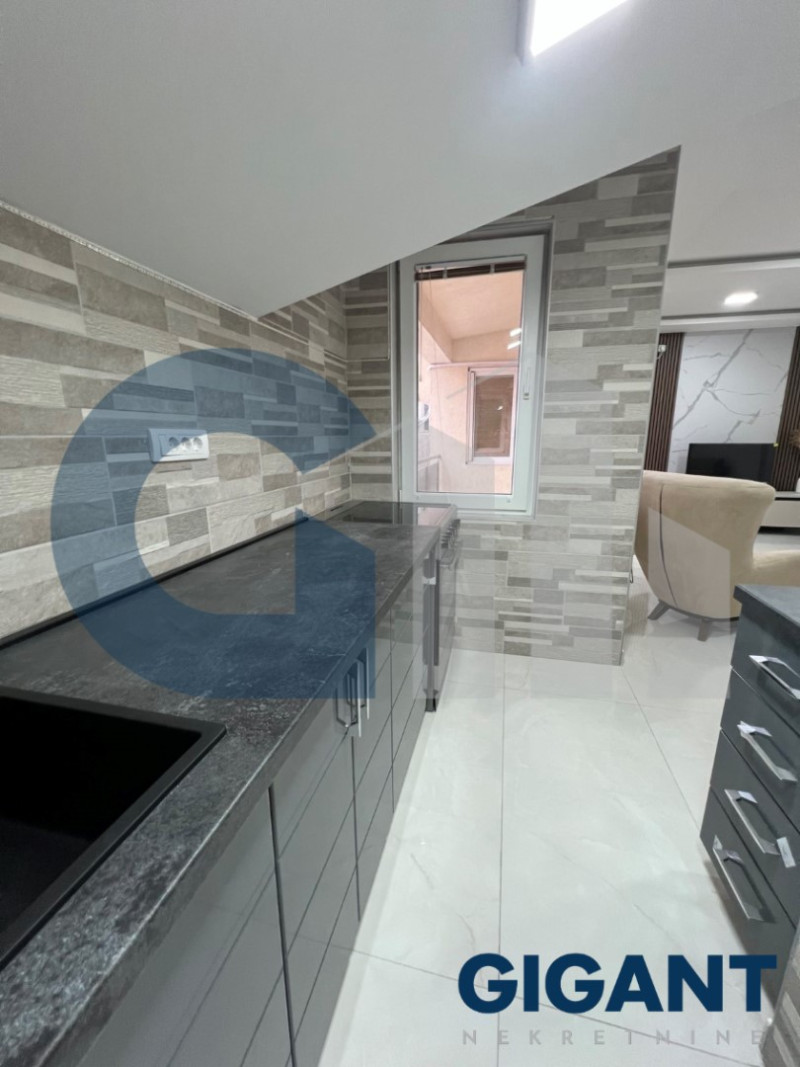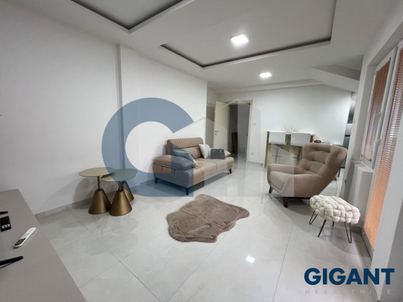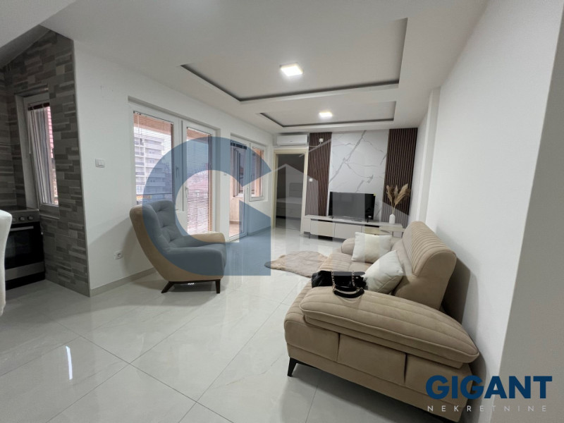 Lux dizajnerski opremljen stan, izuzetno svetao i komforan, sa velikom prostranom terasom sa otvorenim pogledom. Stan je neuseljavan, sve je novo i u garanciji. Grejanje centralno, podno koje ulazi u cenu zakupa. U sklopu objekta veliki market, na 50m autobus, pošta, blizina pijace i banaka. Odlična lokacija, centralni deo naselja. Na spratu su dva stana sa izdvojenim hodnikom. Parking u slobodnoj zoni ispred zgrade.