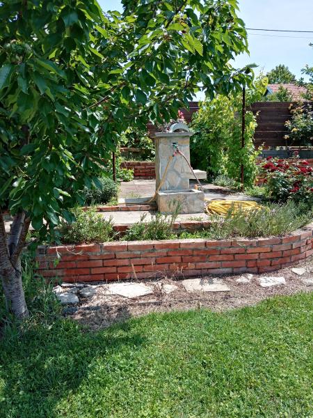 Plac je lepo osmišljen, sastoji iz 3 dela, voćnjak i bašta sa navodnjavanjem kap po kap i prelep ruzićnjak.