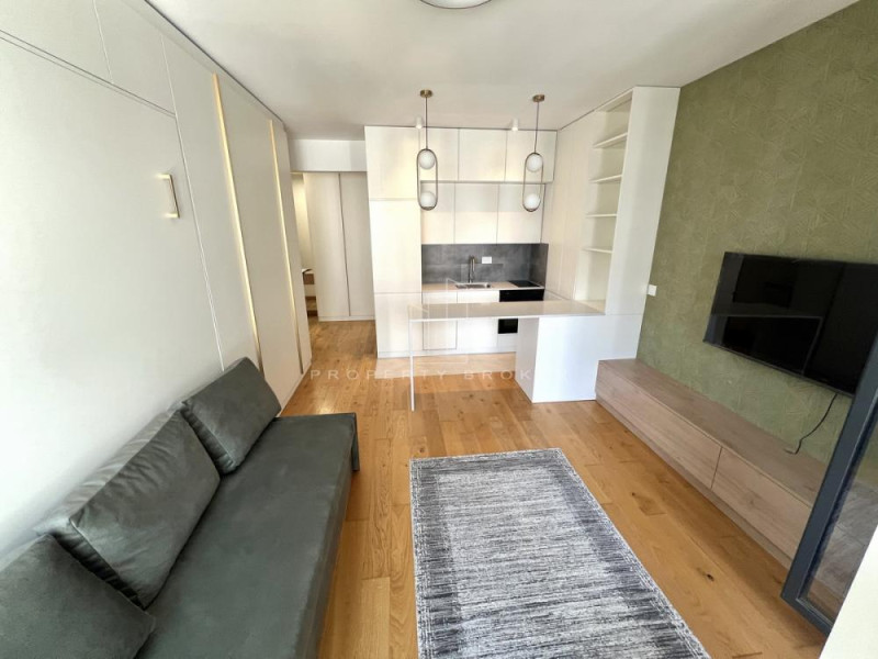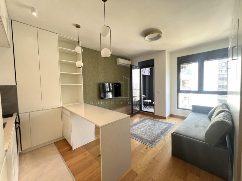 U ponudi studio stan u luksuznom kondominijum naselju Voždove kapije. Raspored prostorija : ulazni hodnil, dnevno-spavaći deo, kuhinja, kupatilo i terasa. Potpuno namešten, sa opremljenom kuhinjom, belom tehnikom, ugradni bračni ležaj na zidu za dodatnu udobnost. Useljiv odmah.