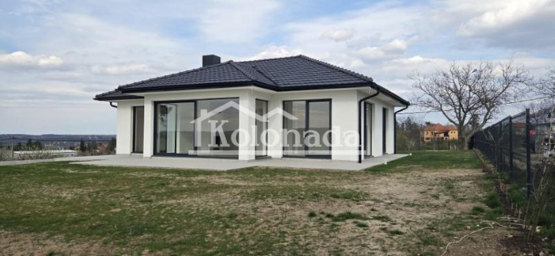 Kuća se nalazi na odličnoj lokaciji, na uzvišenju u mirnoj i tihoj ulici. Sastoji se od hodnika, prostranog dnevnog boravka sa kuhinjom, trpezarijom i kaminom, kupatila i tri spavaće sobe (uključujući master sobu). U donjem nivou su garaža (30 m²) sa rolo vratima i tehnička soba.