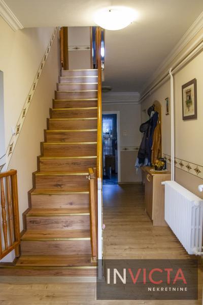 Na spratu su dve terase, hodnik, kupatilo , dve spavace sobe, te veliki dnevni boravak – 40m 2. U uređenom dvorištu su još 3 objekta pogodna za neke vrste poslovanja, od 167 m2, 220m2 i 38 m 2. U nastavku kuće je njiva od nepunih 12.000m2, uz mogućnost kupovine još jedne njive od cca 10.000m2. Kuća je izolovana, sa PVC stolarijom. Grejanje na toplotne pumpe i čvrsto gorivo (drva), gas ima ali nije prikjučen, struja trofazna, alarm sa kamerama, vodovod – bušeni bunari 2 kom, kanalizacija – septička jama. U ceni kuće je i kompletan nameštaj sa tehnikom. Uredna pravna dokumentacija. U cenu je uključena i posrednička provizija. Broj u Reg.posrednika 2107.