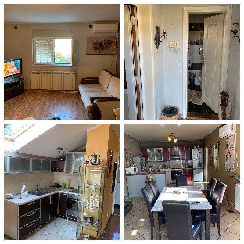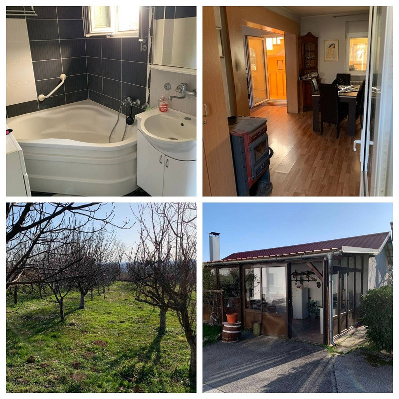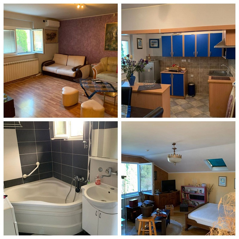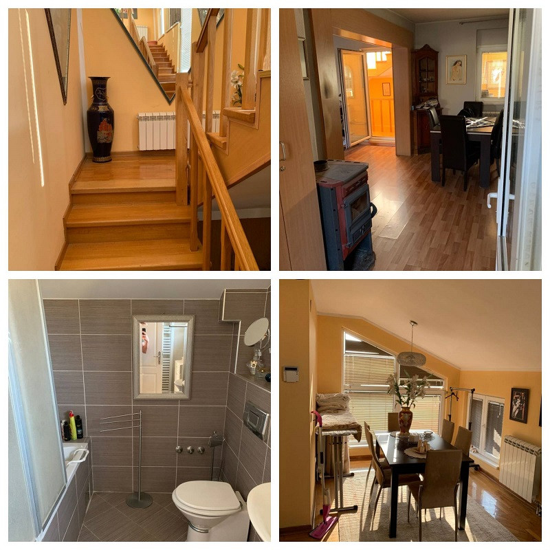 Kuća površine 250 mkv,sastoji se od prizemlja i sprata.U prizemlju dva velika dnevna boravka sa kupatilima i kotlarnicom.