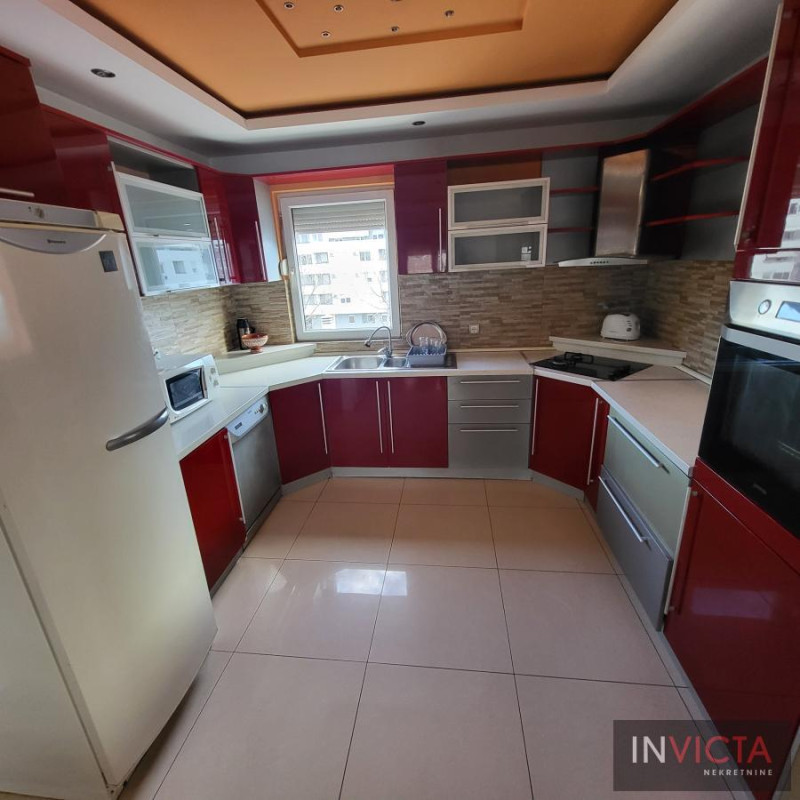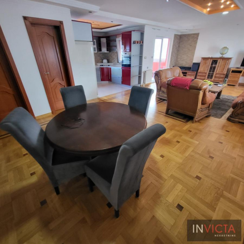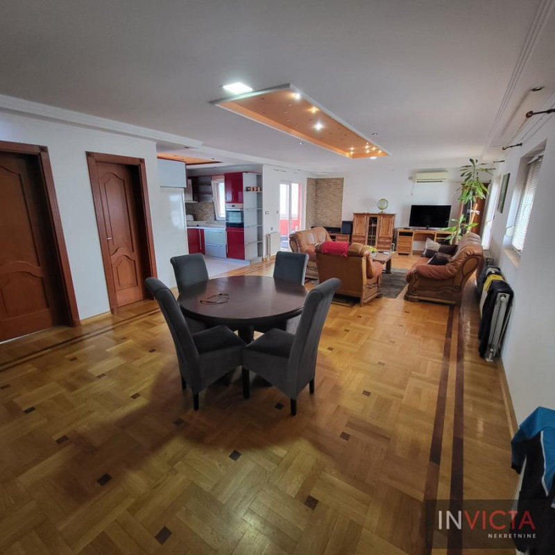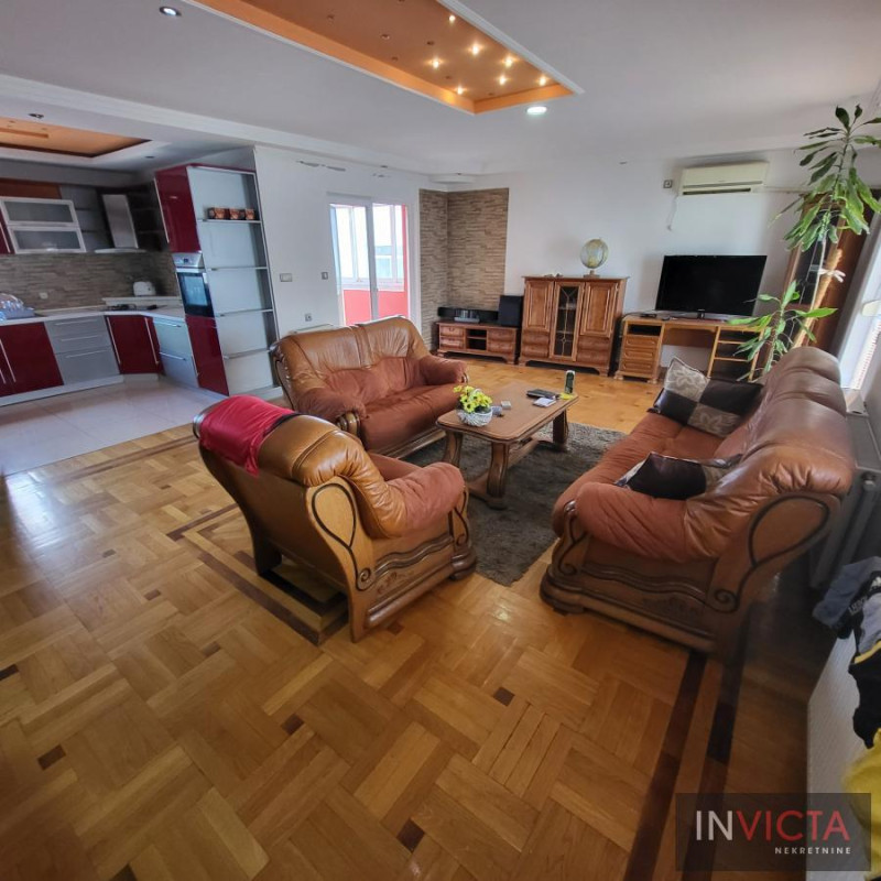 Izdaje se prostrani 5,5-soban kompletno opremljen stan u Petrovaradinu. Četiri spavaće sobe, radna soba, dnevni boravak, kuhinja, trpezarija, dve manje i jedna prelepa, velika terasa. sve ukupno oko 200m2. Grejanje na gas, ukupni režijski troškovi od 300-350 eura tokom zime kada se plaća grejanje, koje se ne plaća u letnjem periodu. U sklopu objekta zatvoreni bazen, mogućnost korišćenja istog. Odmah useljiv stan, obavezan depozit. Broj u Reg.posrednika 475.