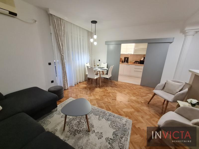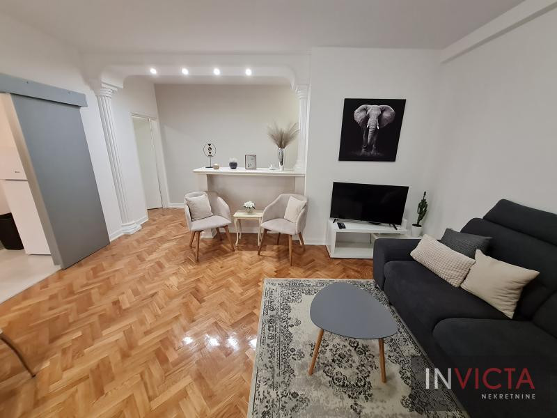 U potpunosti renoviran i kompletno opremljen odličan komforan dvosoban stan u strogom centru grada. Ulazno predsoblje, prostran i svetao dnevni boravak sa trpezarijskim delom i izlaskom na terasu. Odvojena kuhinja sa ostavom i takođe vezom sa terasom. Spavaća soba sa bračnim ležajem i kupatilo. Račun informatike cca 10.000 din. SBB internet sa ktv je 4.200 din. Stan je useljiv od 01.04. Isključivo za ozbiljne zakupce. Isključeni pušači i kućni ljubimci. Obavezan depozit. Br. u Reg.posredn.475.