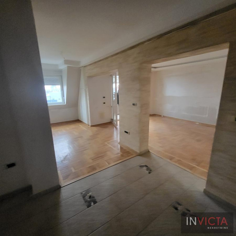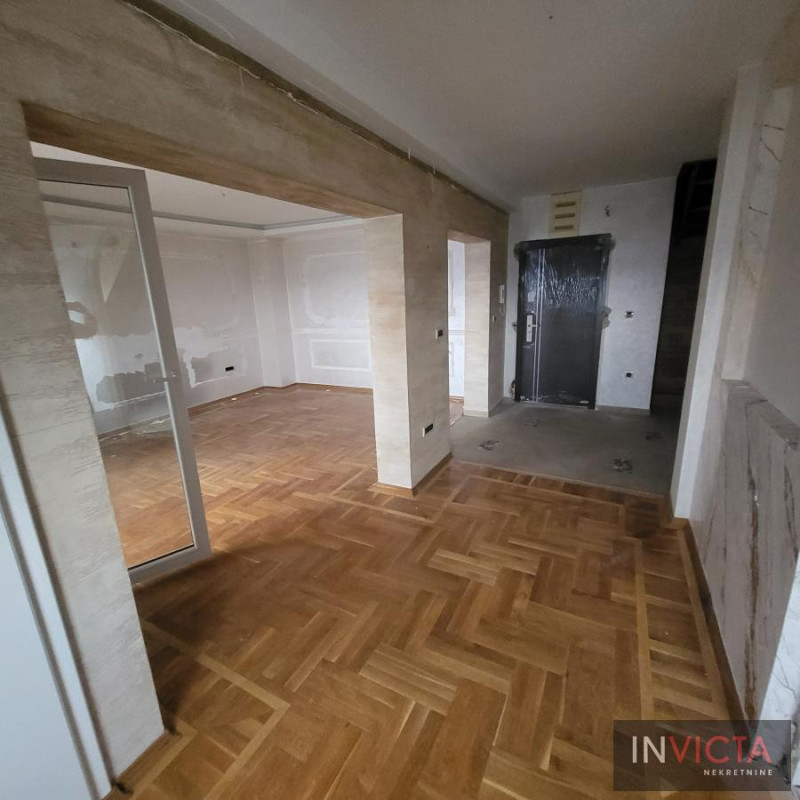 Prostran četvorosoban stan u dva nivoa u blizini bivšeg hotela "Park", pokrajinske bolnice, neposredno kraj sportskih terena naspram novosadskog sajma, odlična lokacija. U donjem nivou stana je prostrani dnevni boravak, odvojena kuhinja, spavaća soba, kupatilo i veća terasa sa pogledom na sajam i sportske terene. Na gornjem nivou dve spavaće sobe sa kupatilom. Nekretnina zahteva izvesna ulaganja. Uredna pravna dokumentacija. Broj u Reg.posrednika 475.