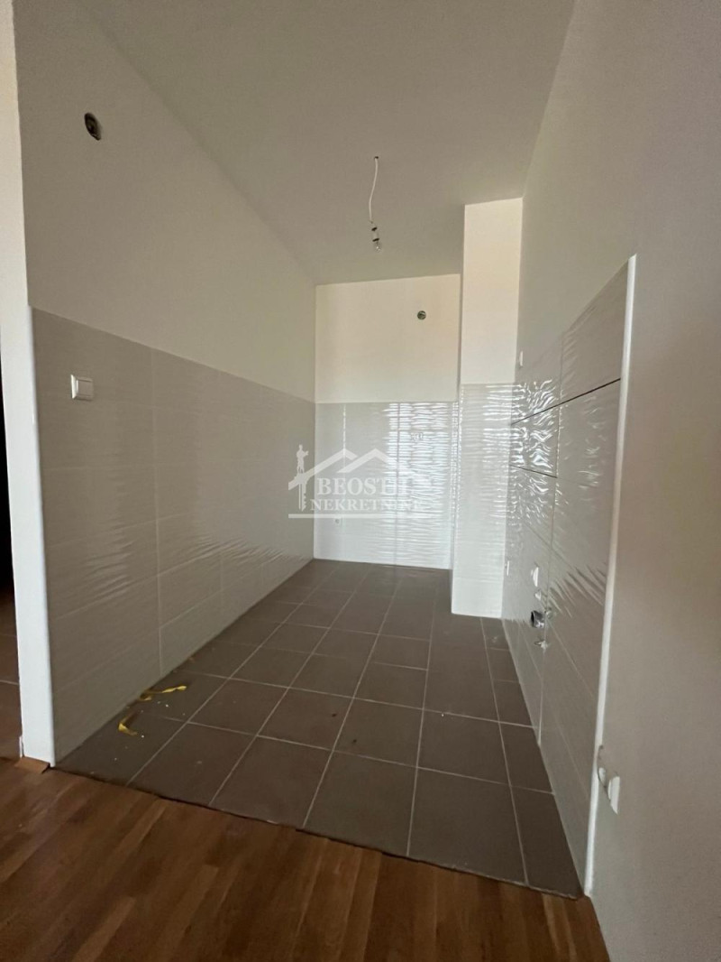 Novogradnja kod sportskog centra. Nov, nekorišćen, trosoban stan, 67 kvadrata, lepog rasporeda na trećem spratu.
