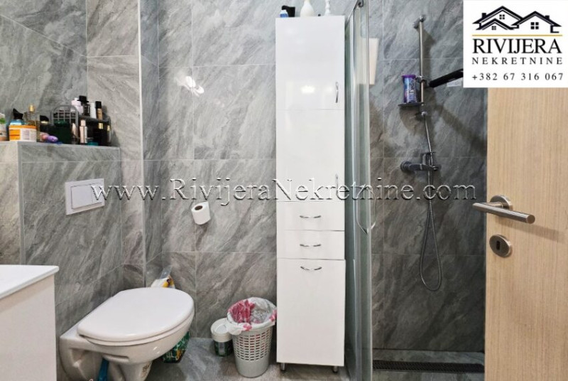 Na prodaju dvosoban stan površine 62 m² u prizemlju nove zgrade, uz novi bulevar Tivat–Budva.