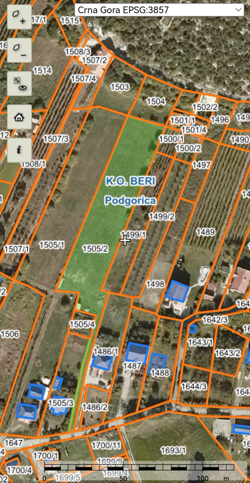 Prodaje se ravan plac površine 4104 m2 (br. parcela 1504 i 1505/2) u Berima, Podgorici.