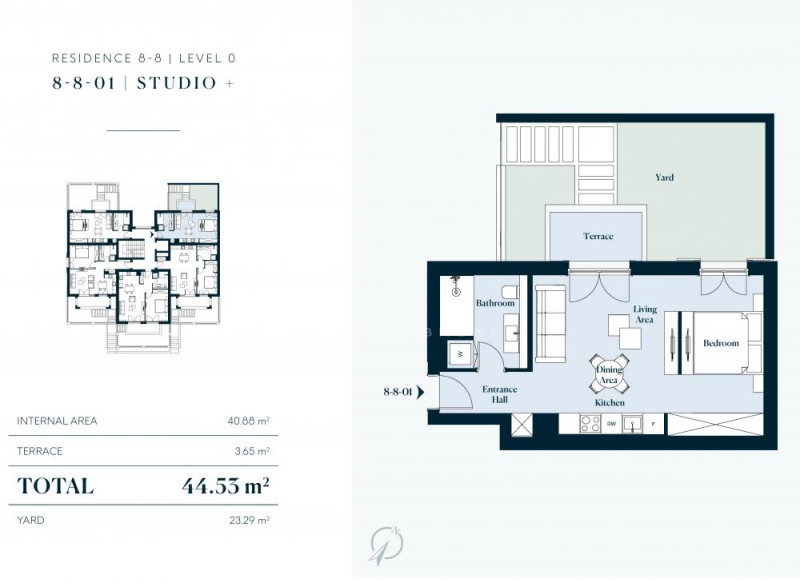 U ponudi stan na prizemlju koji se sastoji: predsoblja, dnevno-spavaćeg dela sa trpezarijom i kuhinjom, terase i bašte od 23m2.