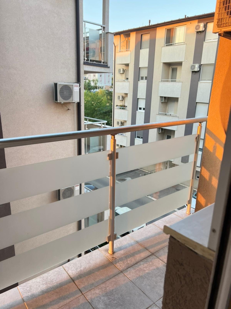 U novijoj zgradi sa liftom, na 3. spratu od 5, izdajemo kompletno namešten stan od 53m2. Stan poseduje dve spavaće sobe kupatilo, kuhinju sa trpezarijom i dnevnim boravkom i terasu.