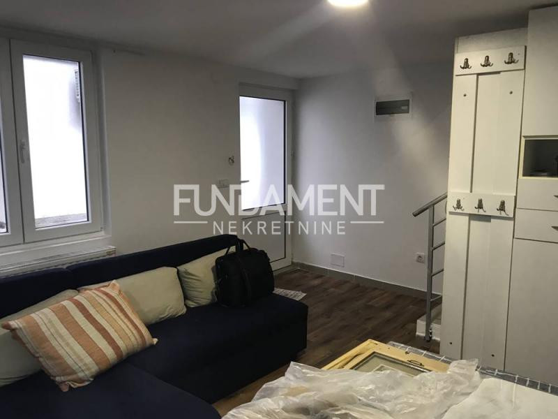 Veoma funkcionalan stan, sa centralnim ulaznim delom u prvom nivou u kome je dnevni prostor sa kuhinjom, i dve manje spavaće sobe i kupatilo na gornjem nivou.