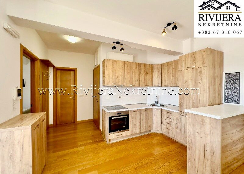 Prodaje se prostran, moderno uređen jednosoban stan površine 76 m² sa garazom, smješten na drugom spratu kvalitetne zgrade, u neposrednoj blizini Porto Montenegra.