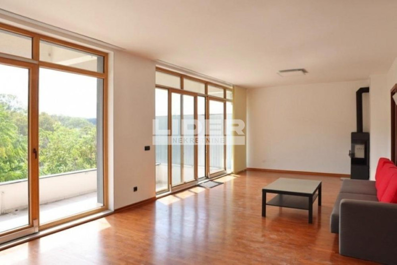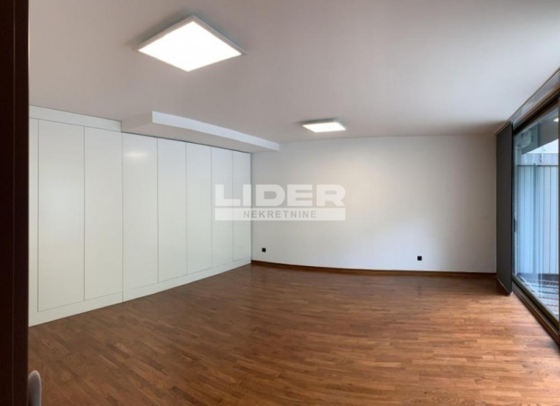 Izdaje se moderna vila na Dedinju, odlično pozicionirana, pogodna za stambeni i poslovni prostor sa dobrim pristupom frekventnim delovima grada. Vila je ukupne površine od 400m², podeljena na tri nivoa, ima dva zasebna ulaza. Sastoji se od dve dnevne sobe sa modernim kaminskim pećima, dve kuhinje, sedam soba, pet kupatila (Hansgrohe, Villeroy & Boch), saune, ugradnih plakara, četiri terase, dvorišta i parkinga sa čak deset parking mesta. Kuća ima savršenu izloženost dnevnom svetlu kroz velika staklene površine tako da je ispunjena prirodnom svetlošću tokom celog dana. Sistem grejanja je baziran na energetski efikasnim toplotnim pumpama, kuća ima podno grejanje (hrastov parket) i fan coil (ventilator konvektor) uređaje. Opremljena je sa sigurnosnim kamerama, 24/7 video snimanjem (moguć pristup preko interneta), dvoja sigurnosna vrata, dva videofona i metalnom sigurnosnom ogradom sa kapijom. Kuća je opremljena SMART LED rasvetom (kontrola osvetljenje daljinskim upravljačem ili aplikacijom) i instaliranim kablovima za računarske mreže. Poželjno dugotrajno rentiranje.
