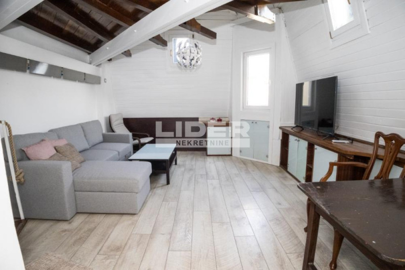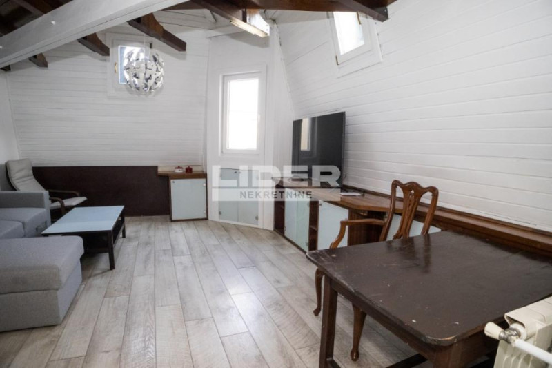 Ovaj stan se nalazi u jednom od najlepših delova Beograda. U strogom centru u neposrednoj blizini prelepog Tašmajdanskog parka. Iako je u centru miran je i tih i nudi izuzetnu prijatnost. Zgrada je u starogradskom otmenom stilu, strogo održavana sa video nadzorom i interfonom. Ovih 52m2 čine predsoblje sa garderoberima, kupatilo, kuhinja i trpezarija odakle se izlazi na terasu, dnevna soba i izdvojena spavaća soba na galeriji. agencijska provizija 50%