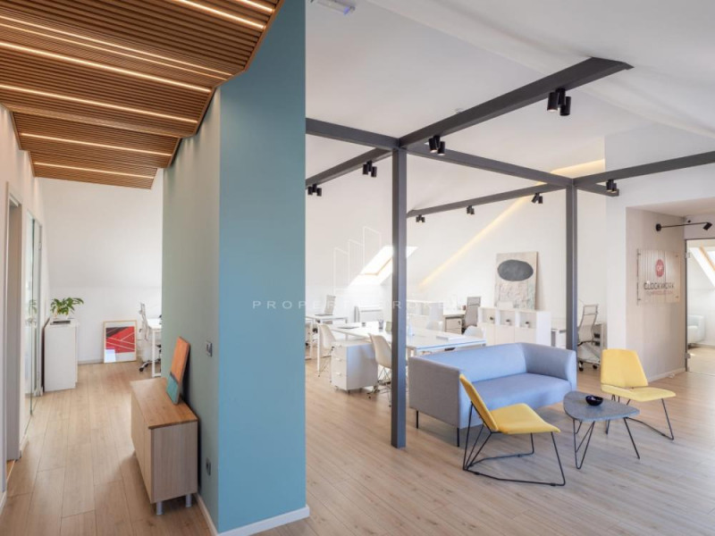 Prostor je kompletno namešten i dizajniran po savremenim standardima, sa enterijerom u svetlim tonovima, obogaćenim drvenim detaljima koji unose toplinu i udobnost u poslovni ambijent.