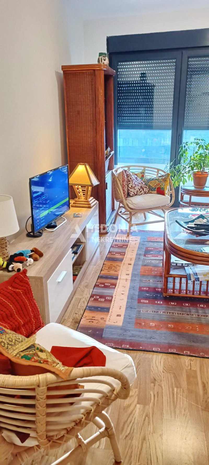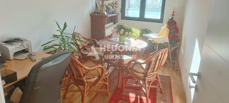 Na dvadesetak minuta vožnje od Beograda, u centru Pančeva, kod Doma vojske, nalazi se ovaj dvoiposoban stan. Smešten je na drugom spratu novogradnje sa liftom. Infrastruktura je kompletna, u blizini su svi neophodni sadržaji za udobno stanovanje: vrtići, škole, gimnazija, Dom zdravlja, pijaca, marketi. Saobraćajna povezanost sa ostalim delovima grada kao i Beogradom je vrlo dobra. Stan je nov i luksuzan, sa podnim grejanjem na gas i aluminijumskom stolarijom. Od prostorija poseduje ulazni hodnik, dnevni boravak sa trpezarijom i kuhinjom, veću i manju spavaću sobu, kupatilo i veliku lođu. Stan je kompletno opremljen novim nameštajem, ugradnom kuhinjom sa tehnikom kao i velikim ugradnim plakarima. Postoji mogućnost kupovine garažnog mesta površine 12 m2, po ceni od 15.000 EUR.