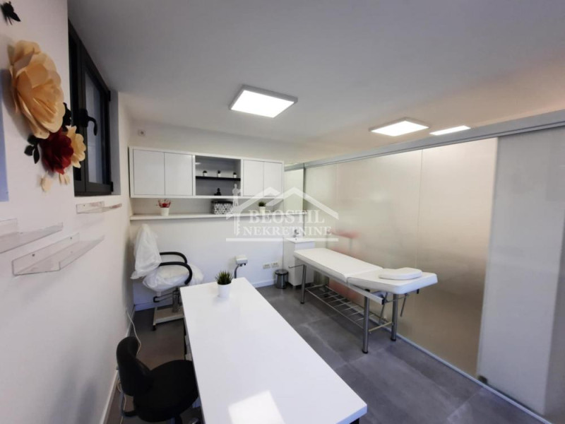 Kompletno je opremljen i pogodan je za lekarsku ordinaciju, kozmetički salon ili neku drugu sličnu delatnost.
