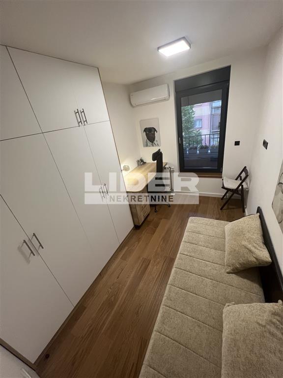 Opremljen je novim namestajem, belom tehnikom, Samsung 50" Smart 4K TV-om, kao i obiljem ugradnih plakara i garderobera koji obezbeduju maksimalan komfor bez narušavanja prostora.
