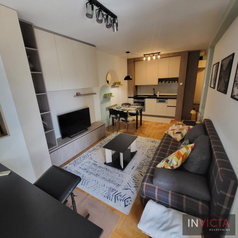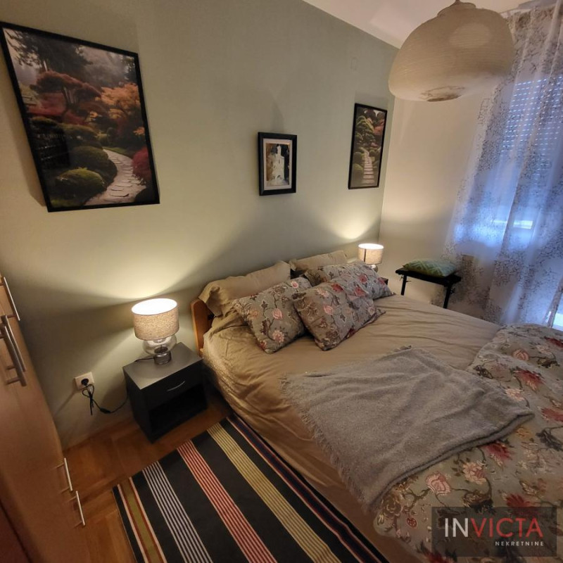 Izdaje se noviji, prelepo opremljen potpuno novim nameštajem i belom tehnikom,jednoiposoban stan na Grbavici, na Bul.Cara Lazara. Iz predsoblja je veza za sve prostorije i to: dnevni boravak sa kuhinjom i trpezarijom, izlazak na terasu, spavaća soba sa bračnim ležajem i garderoberom , ostava, kupatilo sa prirodnom ventilacijom i veš mašinom. Kuhinja opremljena štednjakom, mašinom za sudove. U ostavi je smešten vweliki frižider sa zamrzivačem. Stanarima je na raspolaganju i kompletno posuđe, posteljina, kao i usisivač , pegla i drugi kućni aparati. Odmah useljiv stan uz obavezan depozit. Kućni ljubimci isključeni. Broj u Reg.posrednika 2107.