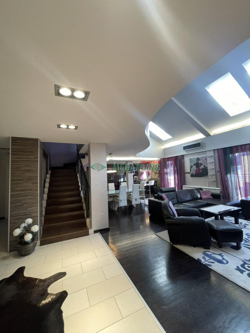Donji nivo od cca 100m² sa velikim dnevnim boravkom, kuhinjom i trpezarijom i izlazom na terasu od cca 30m², sa letnjom kuhinjom i roštiljem. Dole se nalaze još 2 spavaće sobe sa 2 zasebne terase i 2 kupatila.