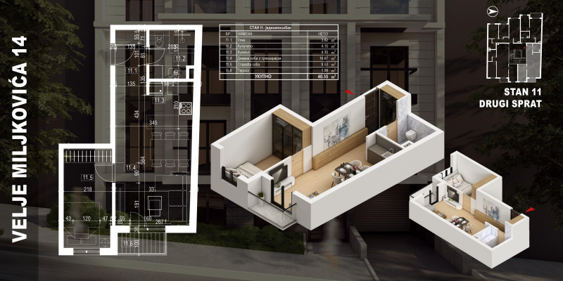Zahvaljujući većoj kvadraturi i dobroj organizaciji, stan pruža dodatni komfor u odnosu na standardne jednosobne stanove i predstavlja odličan odnos cene i kvaliteta.