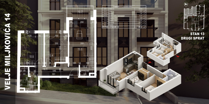 Zahvaljujući optimalnoj kvadraturi i maksimalnoj iskorišćenosti prostora, stan pruža visok nivo komfora i funkcionalnosti.
